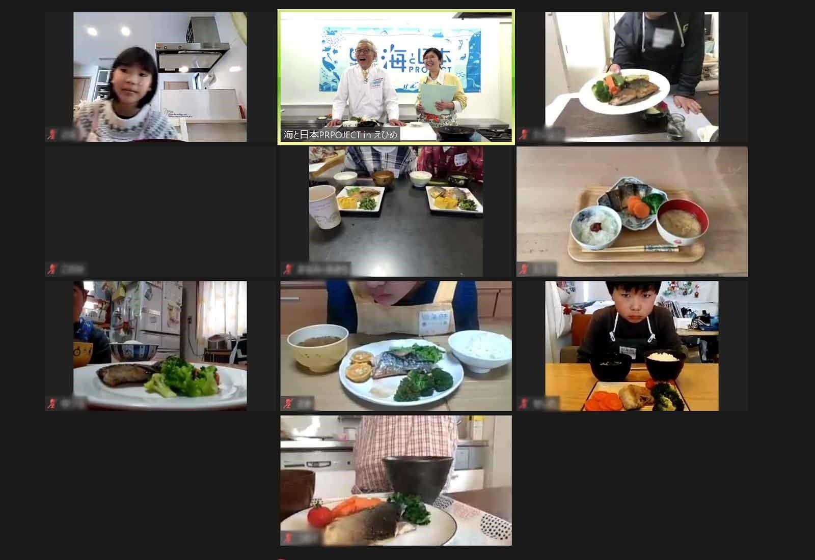 ⽇本さばけるプロジェクト実⾏委員会は、“魚をさばく”という日本古来の調理技法を次の世代へ継承するとともに、豊かで健全な海を未来に引き継ぐアクションの輪を広げる取り組み「日本さばける塾オンラインinえひめ」を3月4日(土)に開催しました。通常は県庁所在地の松山市でリアル開催することが多い同イベントを、オンラインで開催し、参加児童は、河原調理専門学校専任講師・近藤一樹先生の指導のもと「サバ」をさばいて「さばのバターしょうゆ焼き」を作りました。また近藤先生から、さばと愛媛・世界の海についての講義を聞き、海の命の大切さについて学びました。このイベントは、次世代へ豊かで美しい海を引き継ぐために、海を介して人と人とがつながる“日本財団「海と日本プロジェクト」”の一環です。