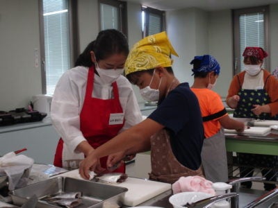 参加者の中で、初めて魚を触る、さばく人が多かったですが、皆さんとても上手にさばいていました。体験した参加者からは、「自分でさばいた魚で調理をするととてもおいしく感じる」との声がありました。