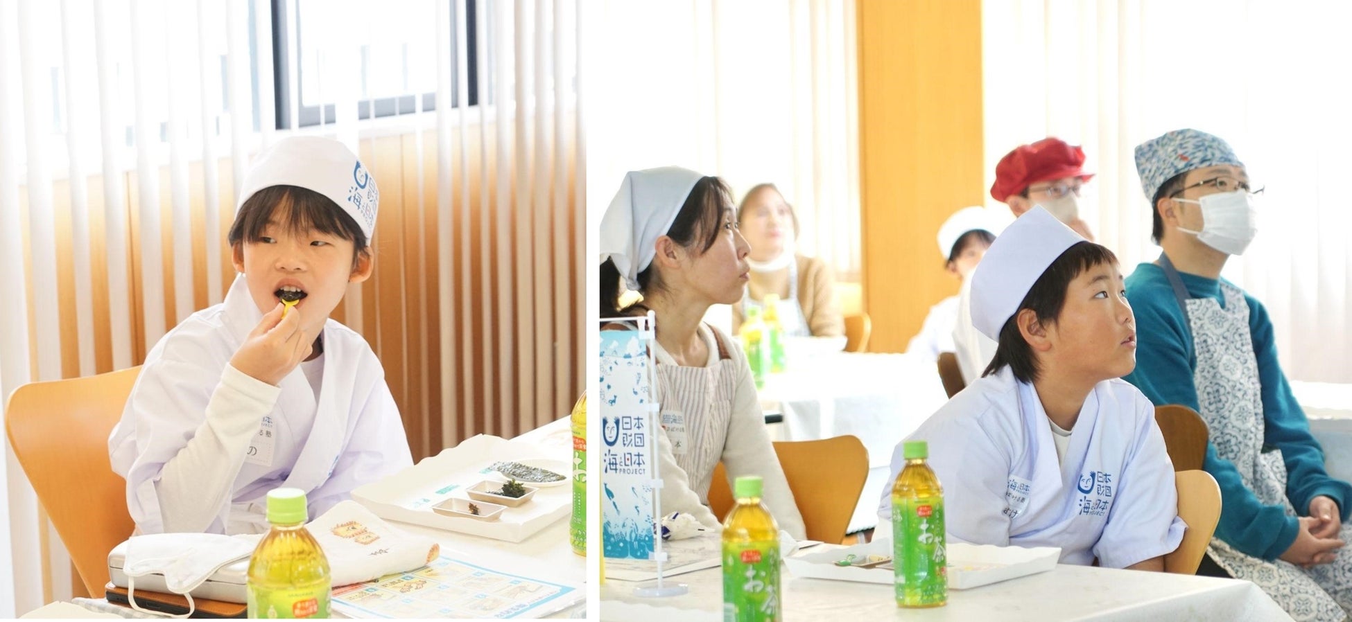 海苔の養殖では食害といって、せっかく育てた海苔がこの後さばく黒鯛などに食べられてしまったり、海の水温が上がったことで、海苔の色落ちや生産量の低下、収穫の時期が短くなっているなど様々な問題が起きていることを知り、参加者は味の違いを感じながら、先生のお話を真剣な表情で聞き入りました。海苔を通してたくさんのことを学び、地元の海への理解が深まった様子でした。