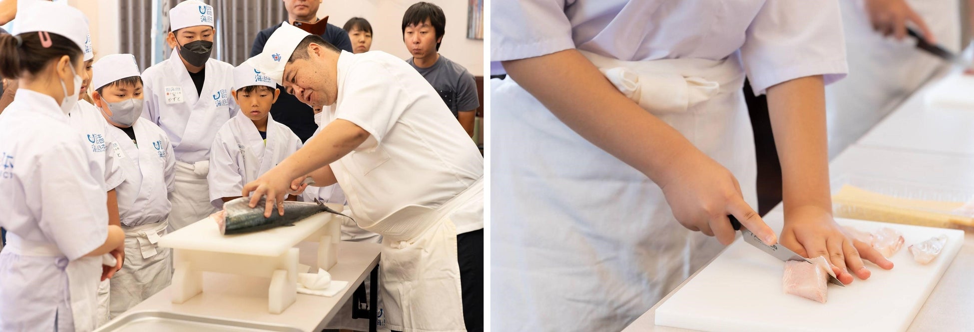 一般社団法人海のごちそう推進機構と魚太郎株式会社は2023年9月16日(土)、半田市ならびに近郊の小学4~6年生を対象に、回転寿司店で魚をさばき、地域の文化と海のつながりや自分と海との関わりを学ぶ体験プログラム「日本さばける塾with回転鮨 魚太郎 半田店」を開催しました。このイベントは、次世代へ豊かで美しい海を引き継ぐために、海を介して人と人とがつながる“日本財団「海と日本プロジェクト」”の一環です。