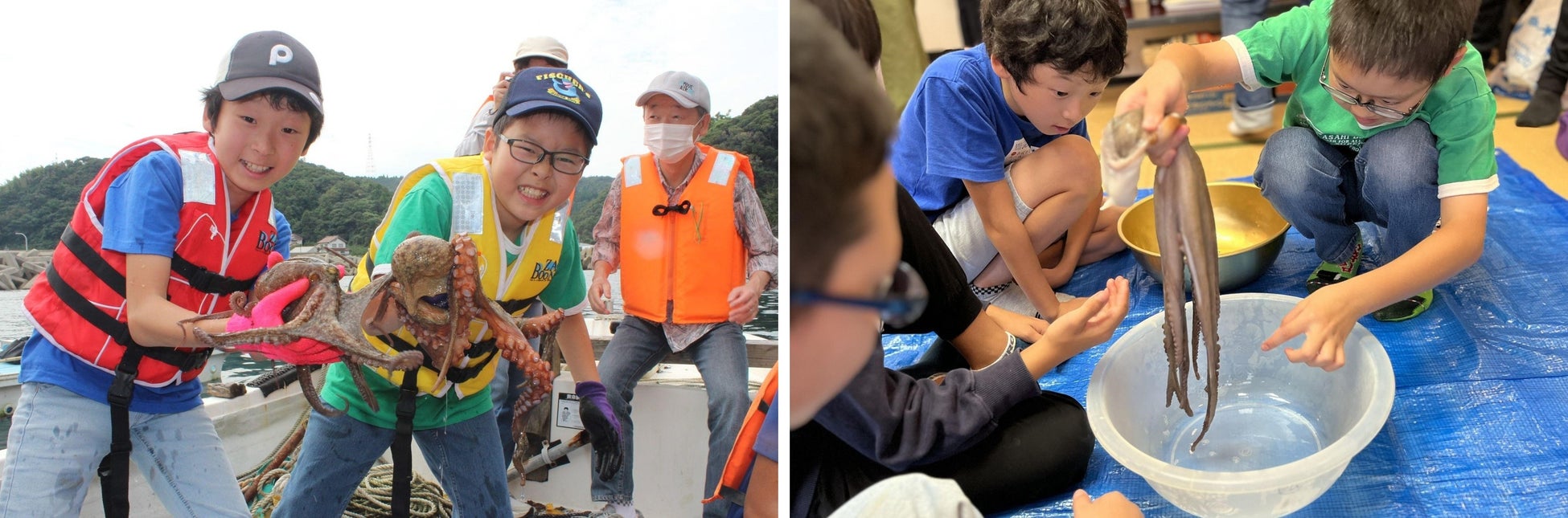 ・開催概要:”魚をさばく”という日本古来の調理技法を次の世代へ継承するとともに、豊かで健全な海を未来に引き継ぐアクションの輪を広げる取り組みとして①講師による魚さばきのレクチャー、親子で刺身作りに挑戦②タコ漁、タコ〆、タコ飯作り体験③地元の漁業の現状や課題、漁業の6次産業化の取り組みなどの見学と講義以上を実施